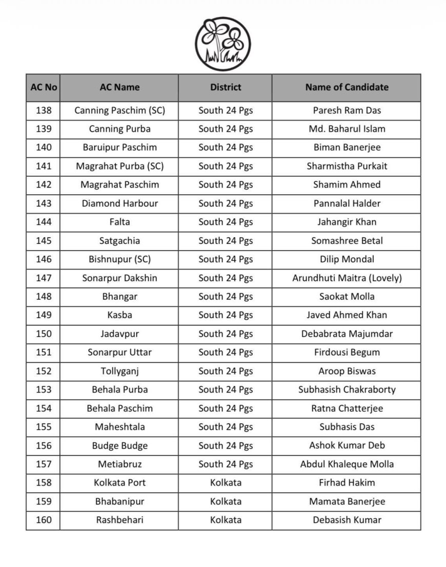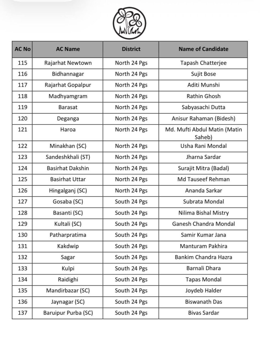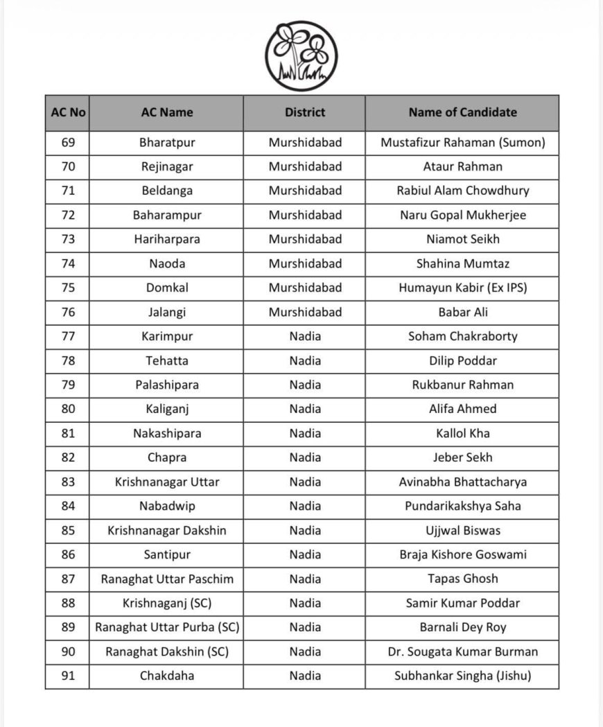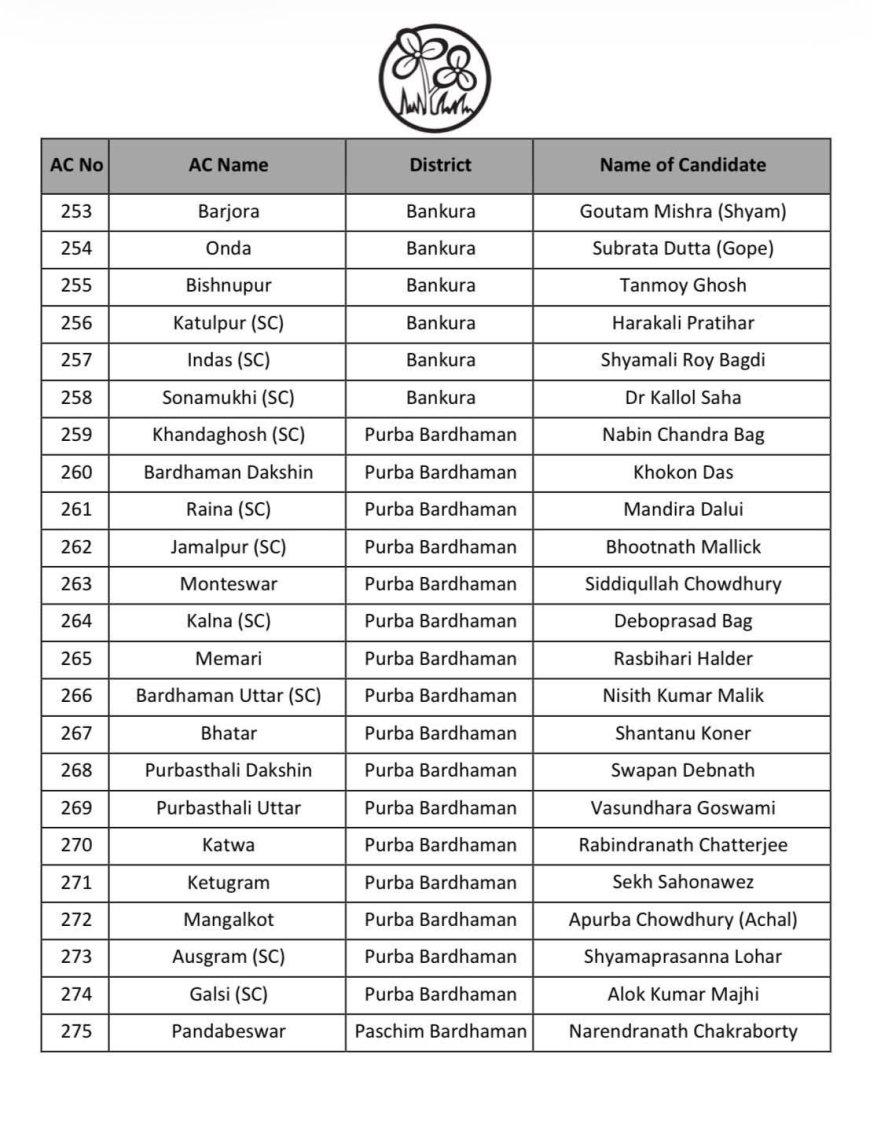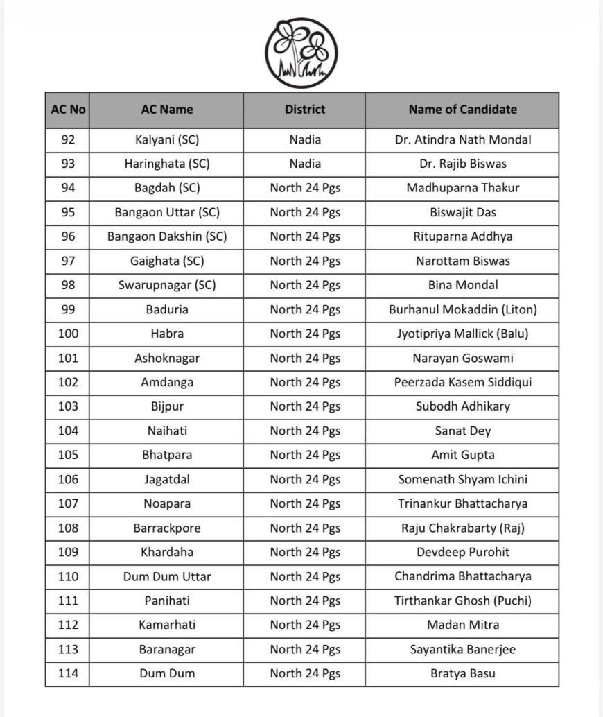 তৃণমূলের প্রার্থী তালিকা প্রকাশ, দেখে নিন এক নজরে
