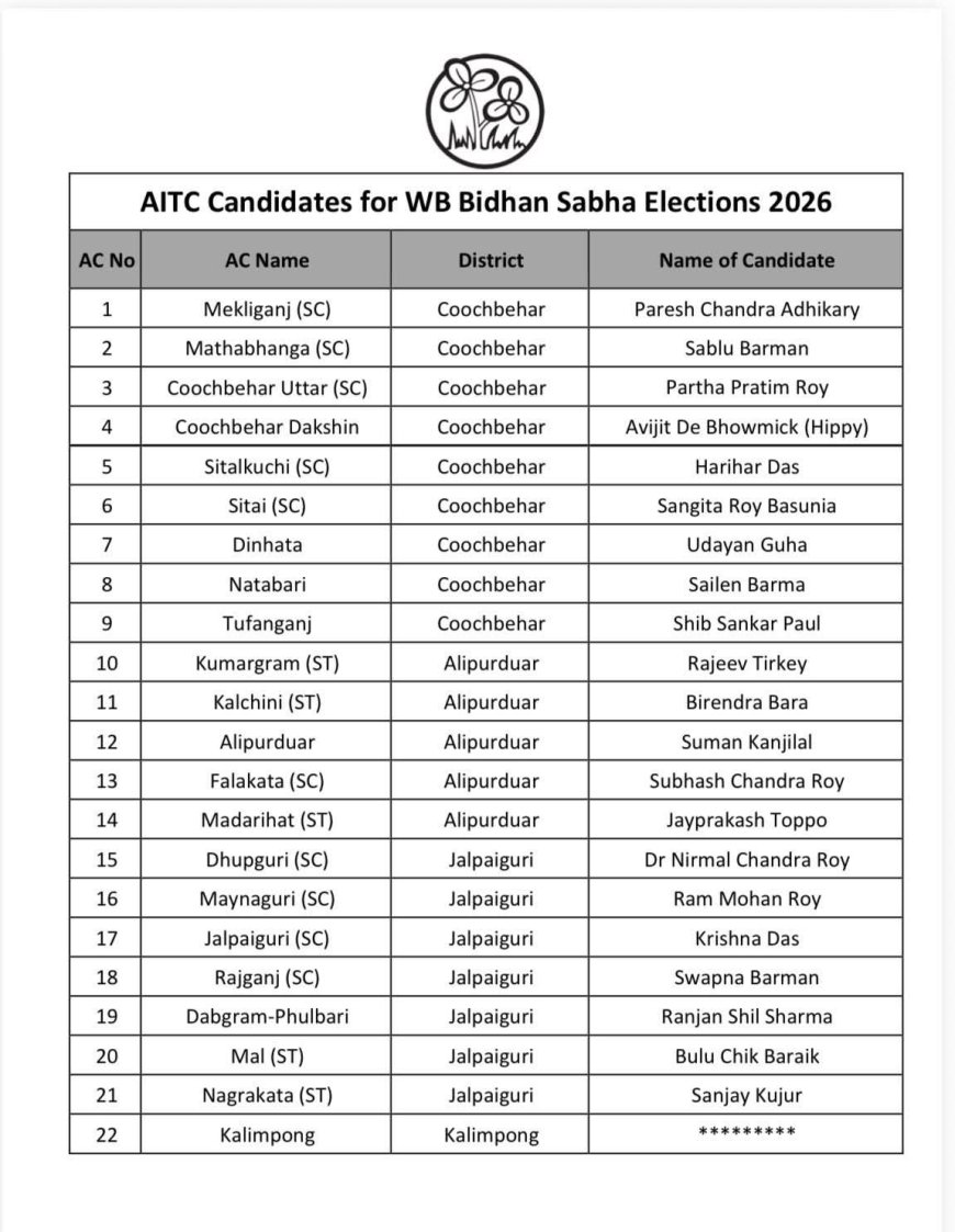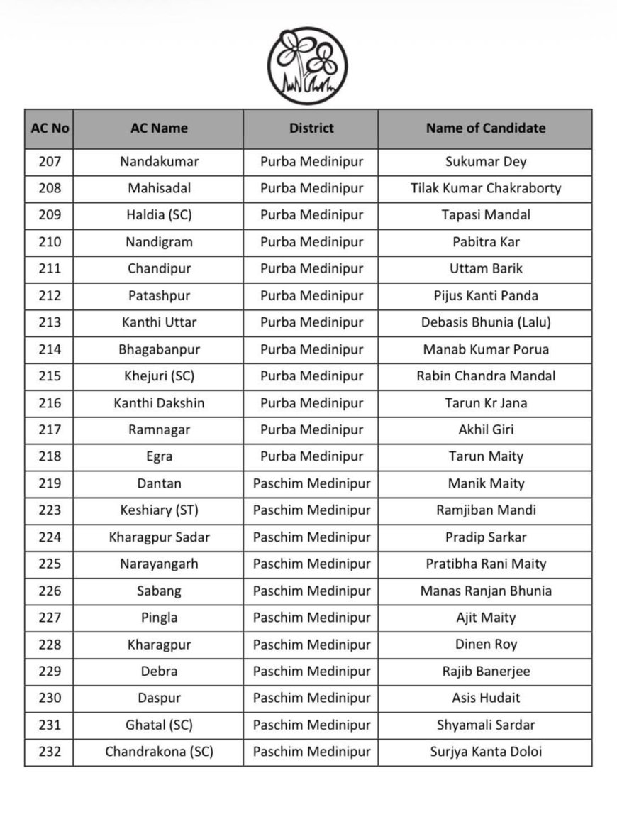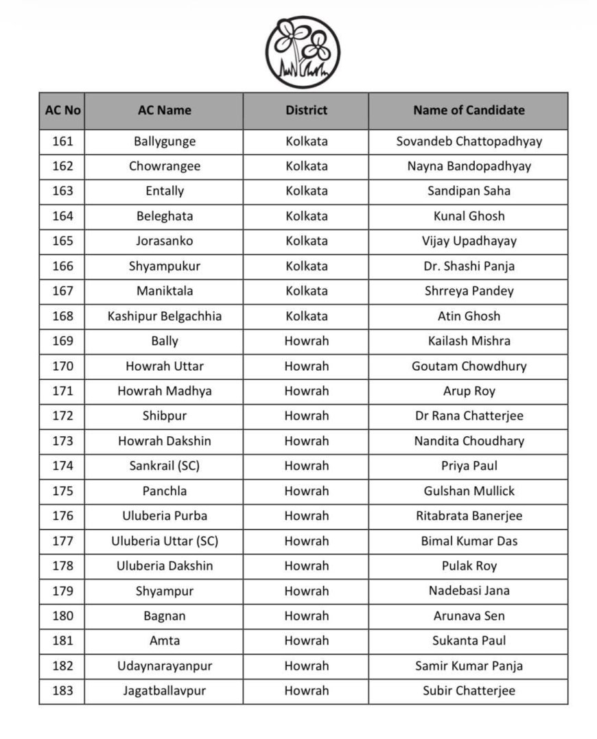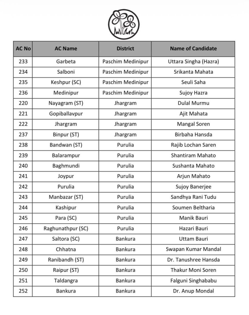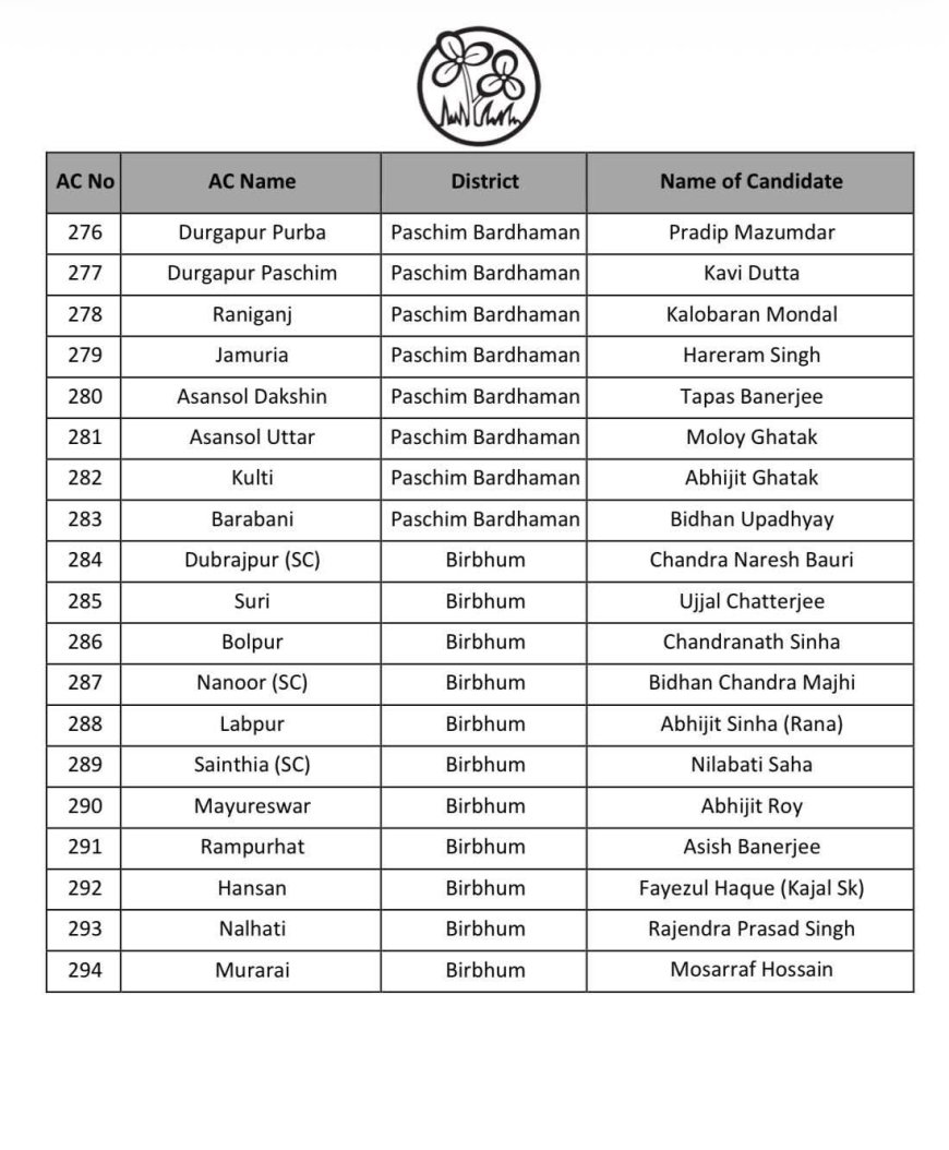 তৃণমূলের প্রার্থী তালিকা প্রকাশ, দেখে নিন এক নজরে